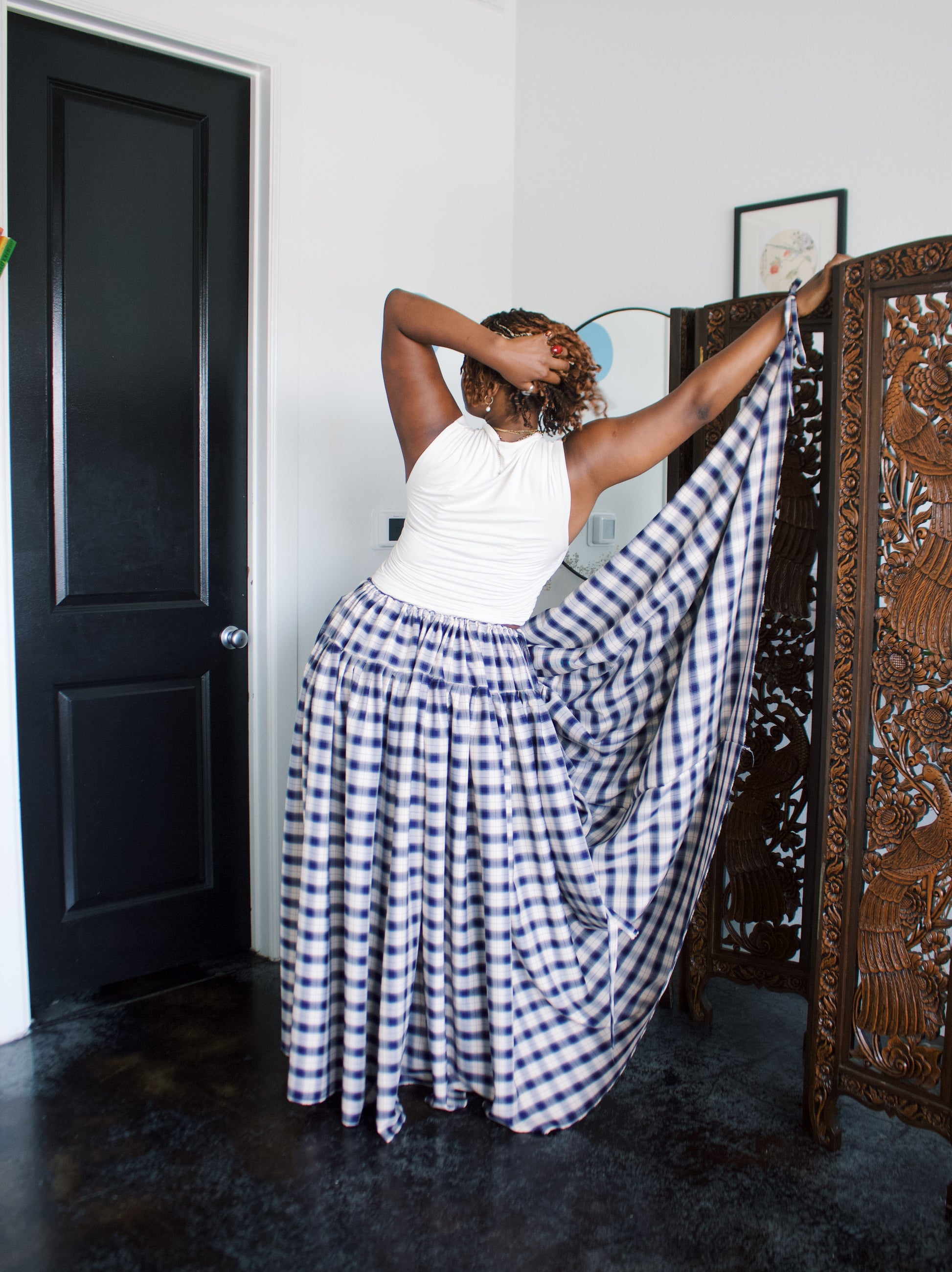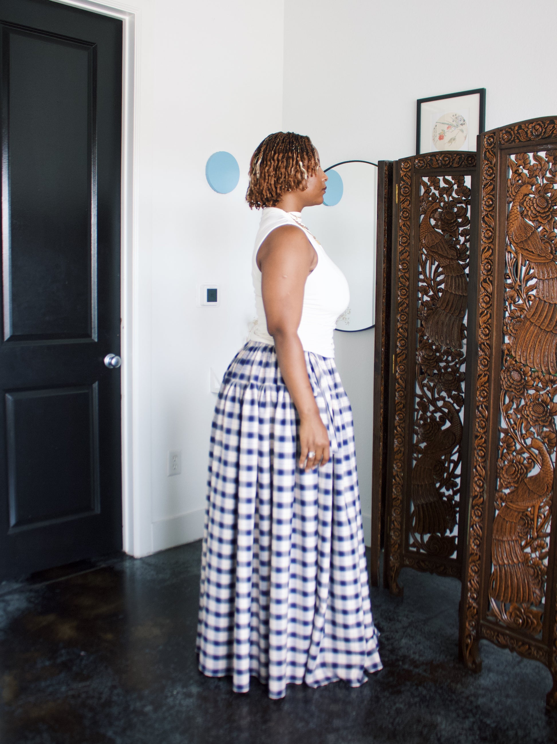 ✿Meadow is a drawstring gathered skirt designed with pockets and with an optional thigh slit.