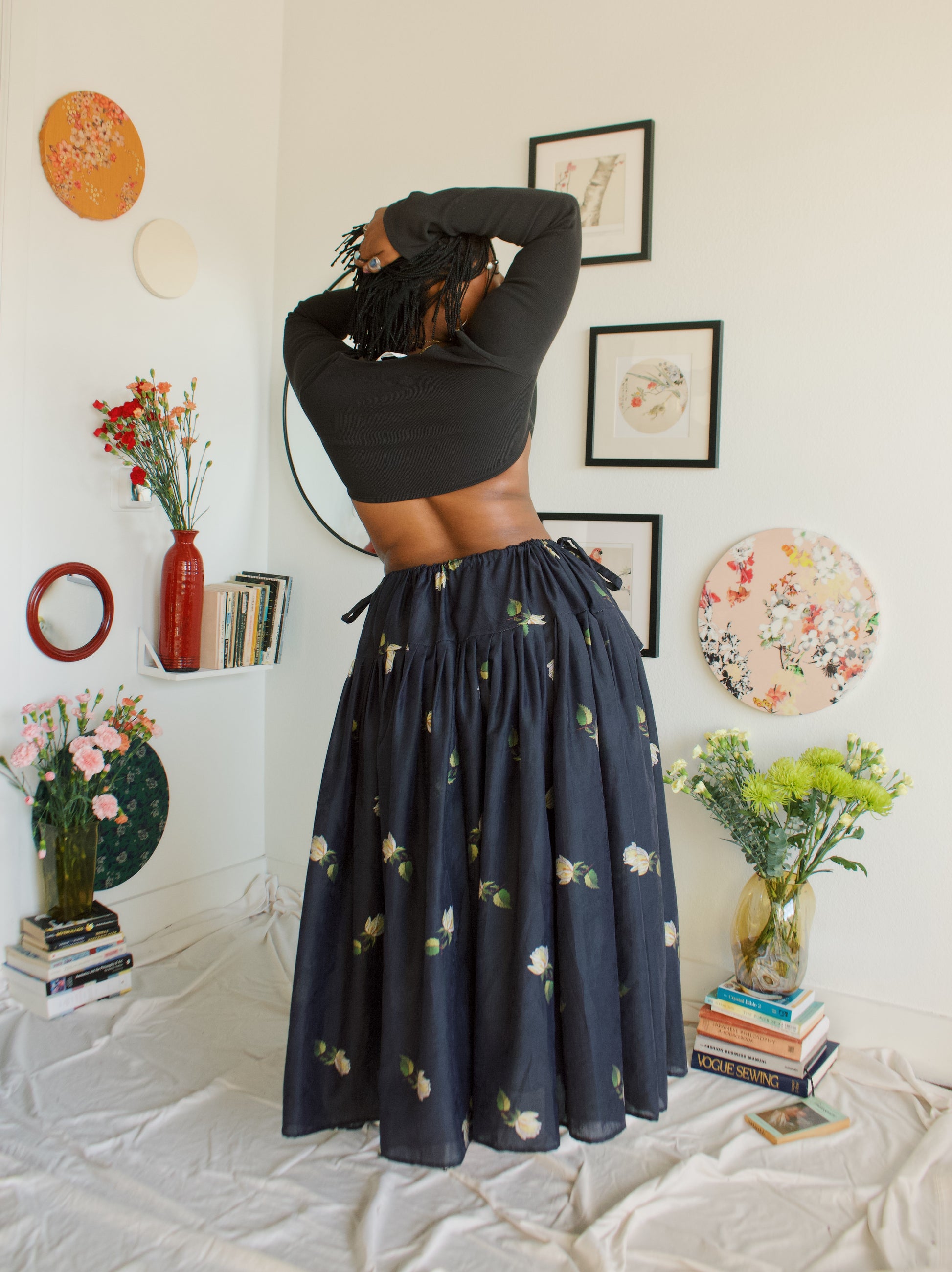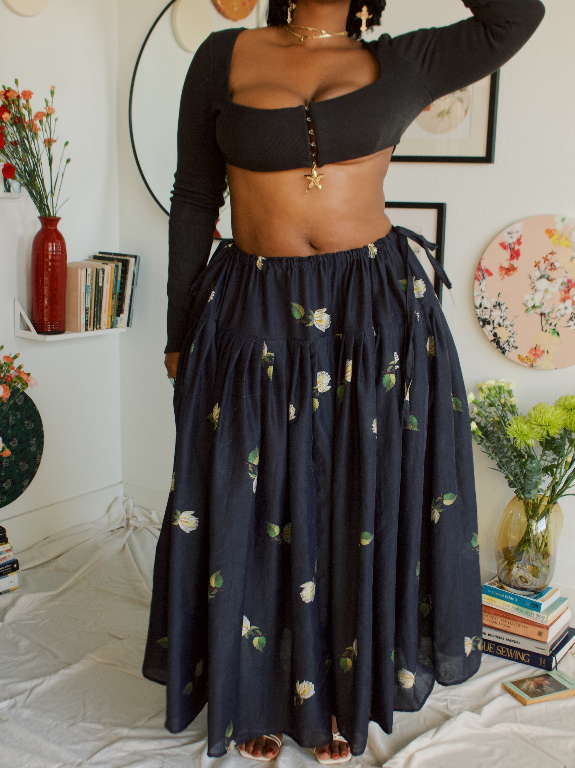 ✿Meadow is a drawstring gathered skirt designed with pockets and with an optional thigh slit.