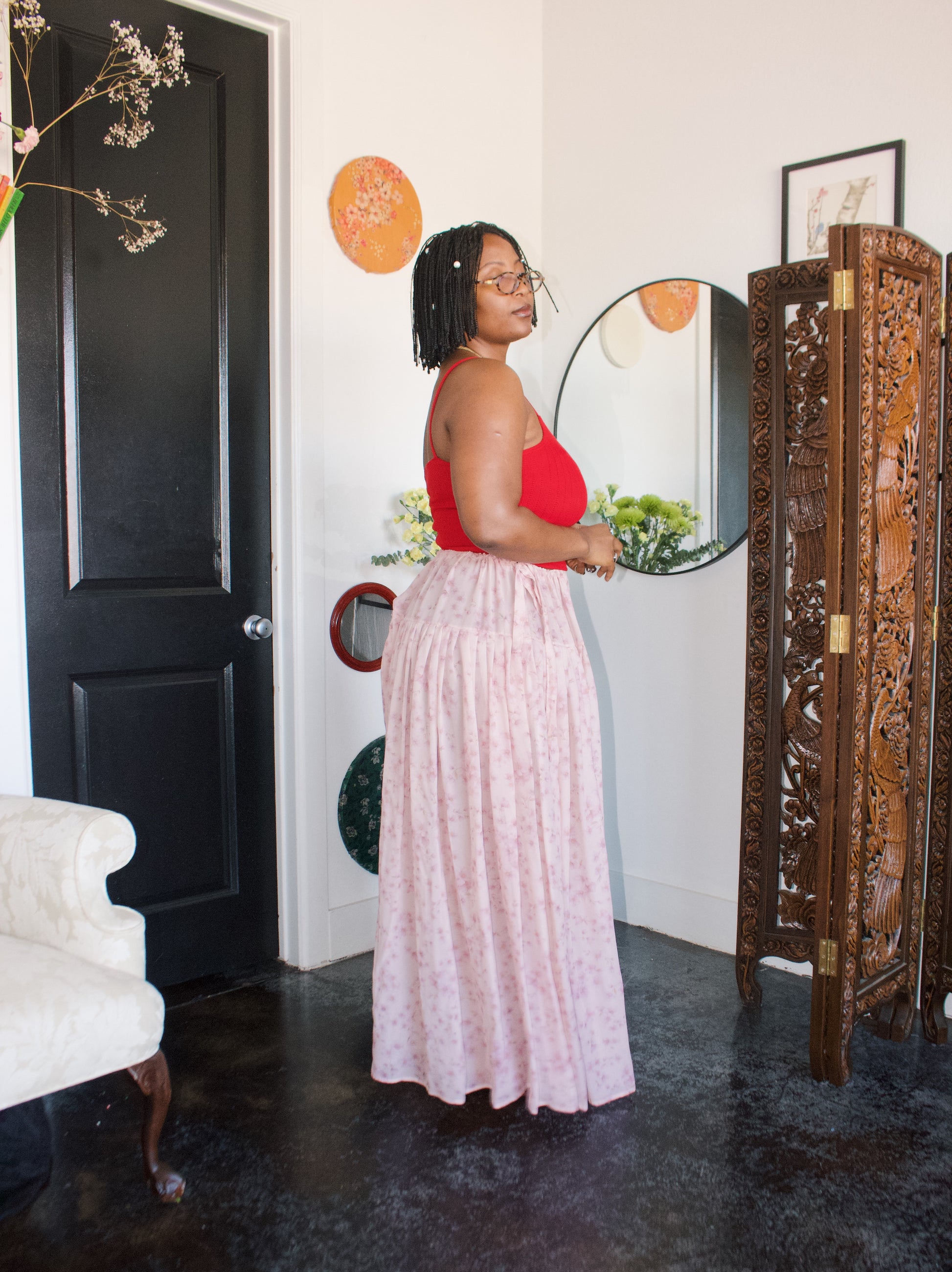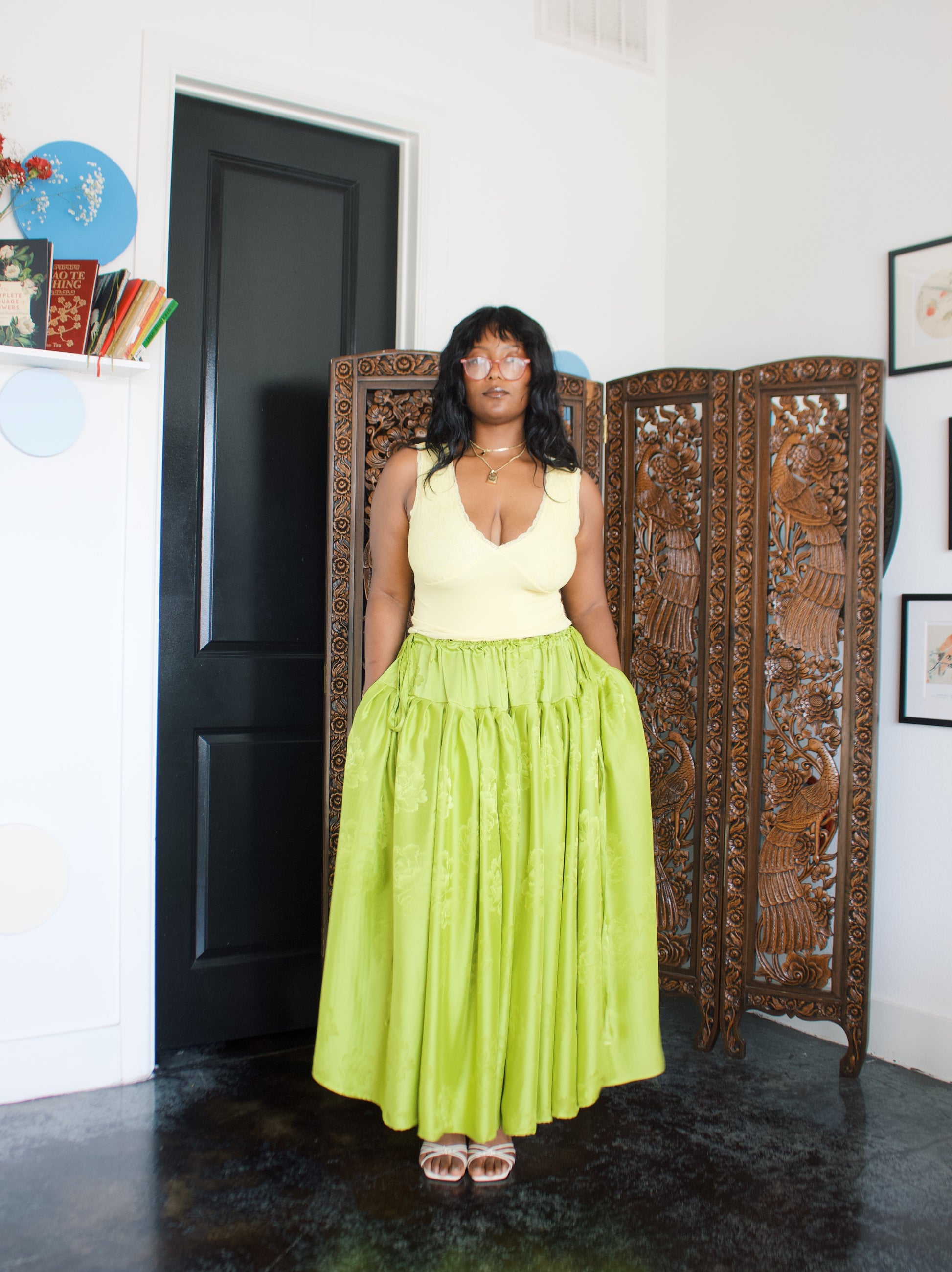 ✿Garden is a build-your-own drawstring gathered skirt designed with pockets and with an optional thigh slit.