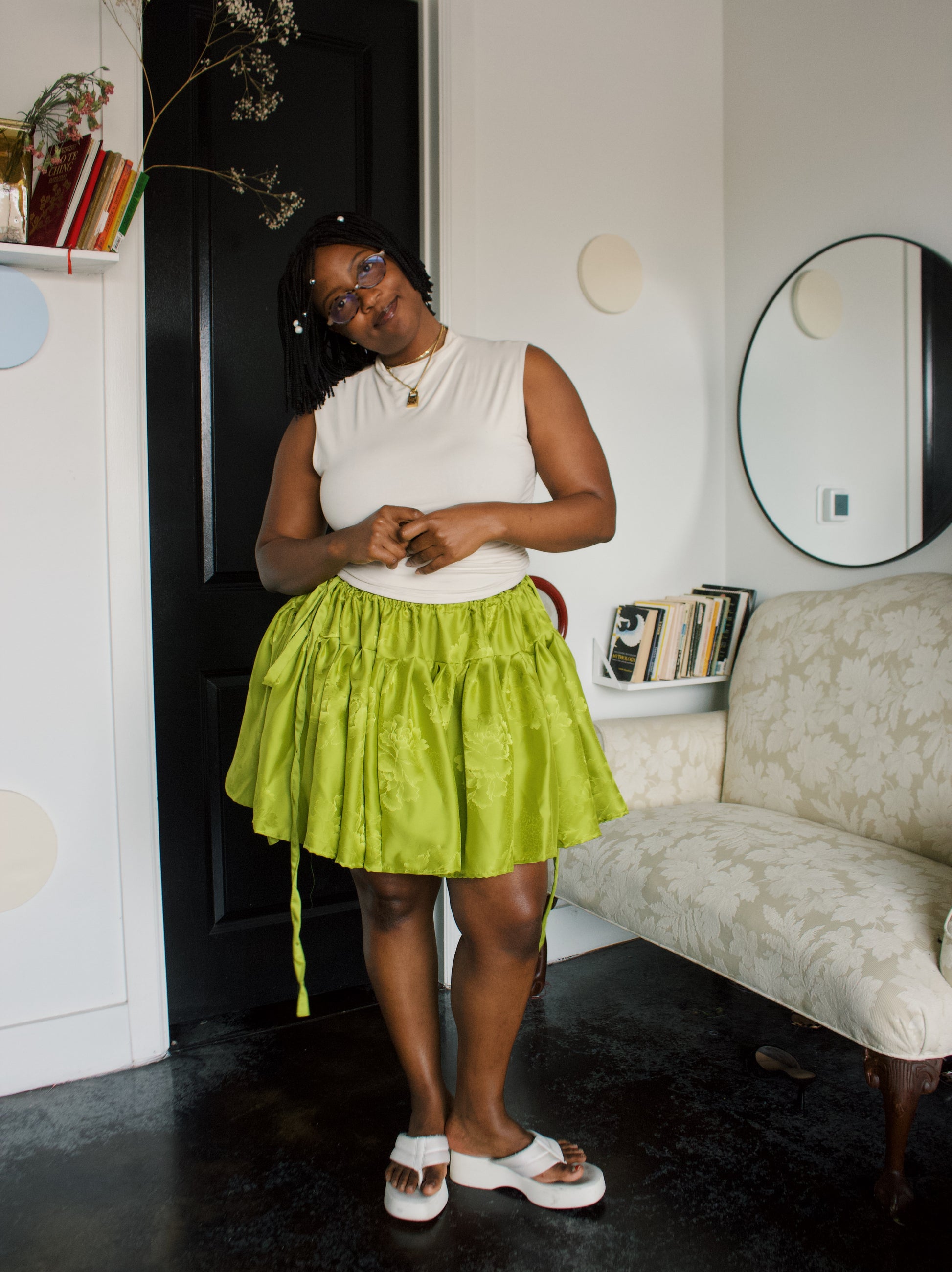 ✿Garden is a build-your-own drawstring gathered skirt designed with pockets and with an optional thigh slit.