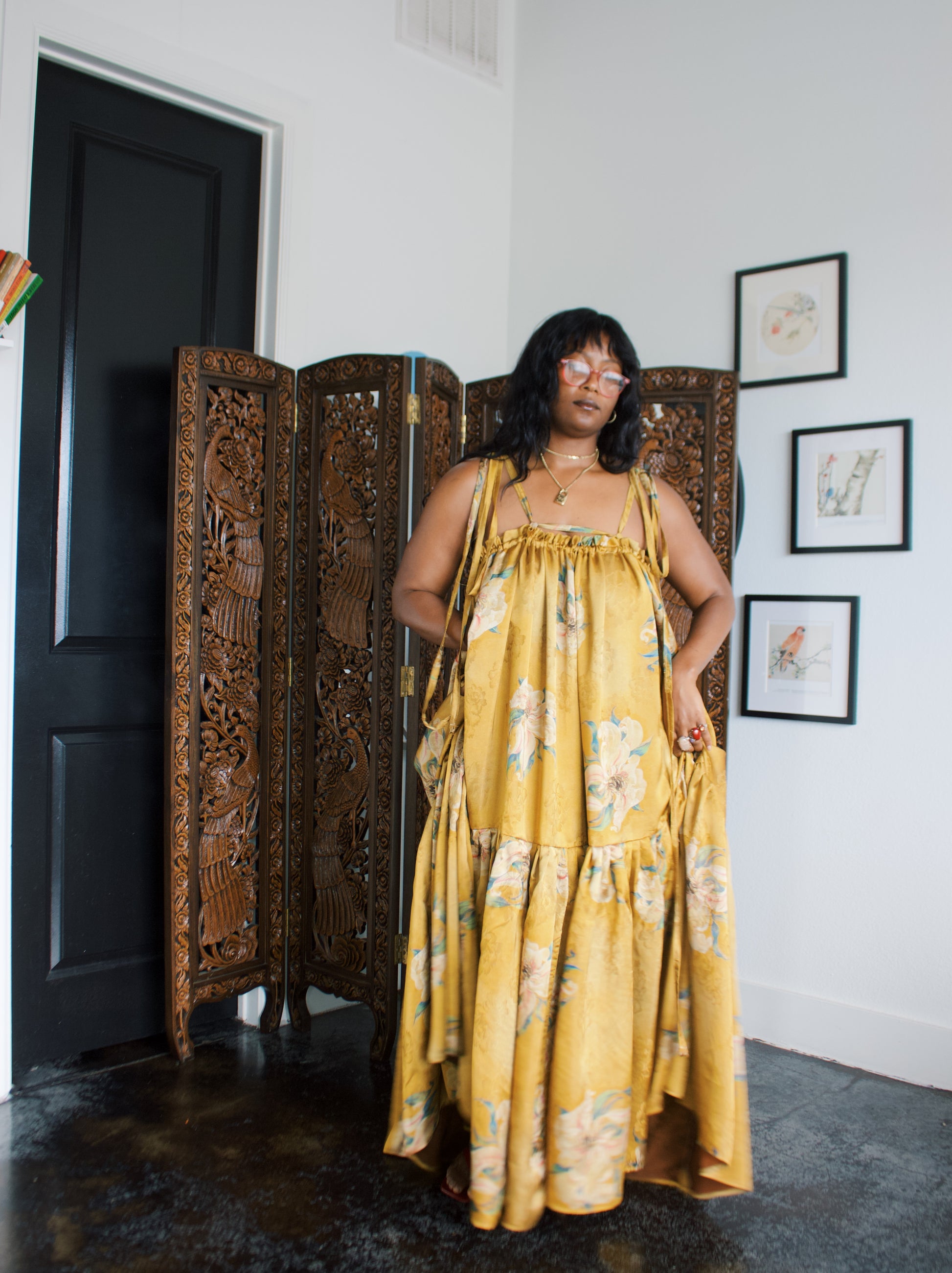 ✿Omi is a gathered drop waist drawstring dress. Featuring pleating details, pockets, and removable spaghetti straps